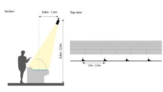 2. ディスプレイの平均光量 (Eave) は 750~1000 ルクス程度にすることが推奨されています。鮮魚コーナーで心地よい雰囲気を演出し、お客さまの目を引くためには、適度な光量が必要です。